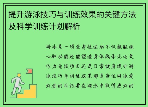 提升游泳技巧与训练效果的关键方法及科学训练计划解析